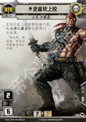文本在本行星上你控制的每个其他战士单位获得+1攻击值。